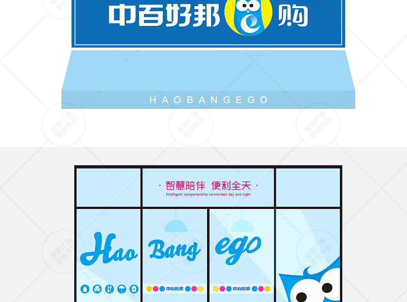 中百好邦e購是中百集團旗下無人零售品牌,本次服務創造貓頭鷹品牌IP,既象征無人零售的“智慧”屬性,又貼合24h服務特征,傳達“智慧陪伴,便利全天”的品牌理念。