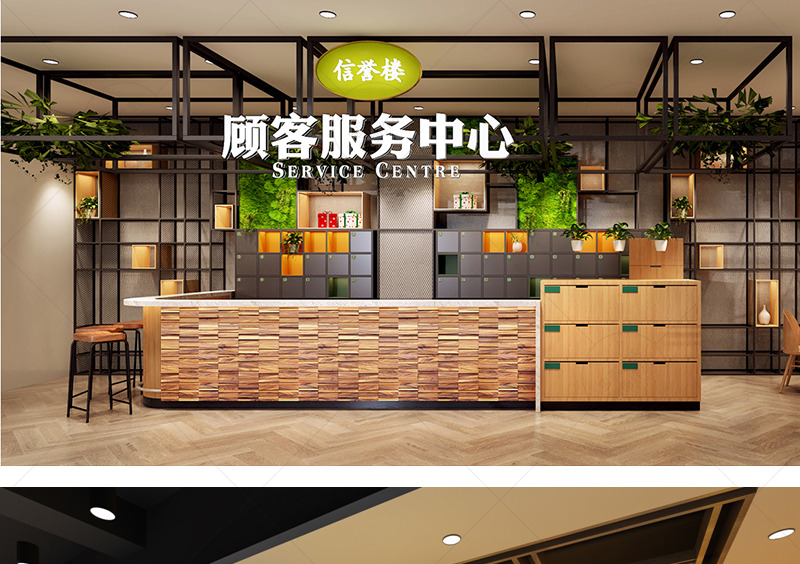 信譽樓百貨集團第一家獨立超市店面,項目面積達到5000平方米。在平面布置上打造“館”的概念,合理規避和利用消防分區及柱網結構,豐富空間層次,增加賣場的可看性及可逛性。